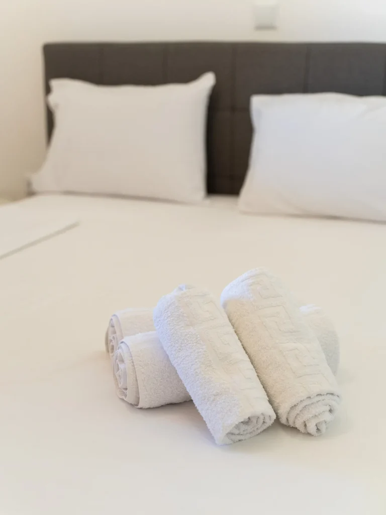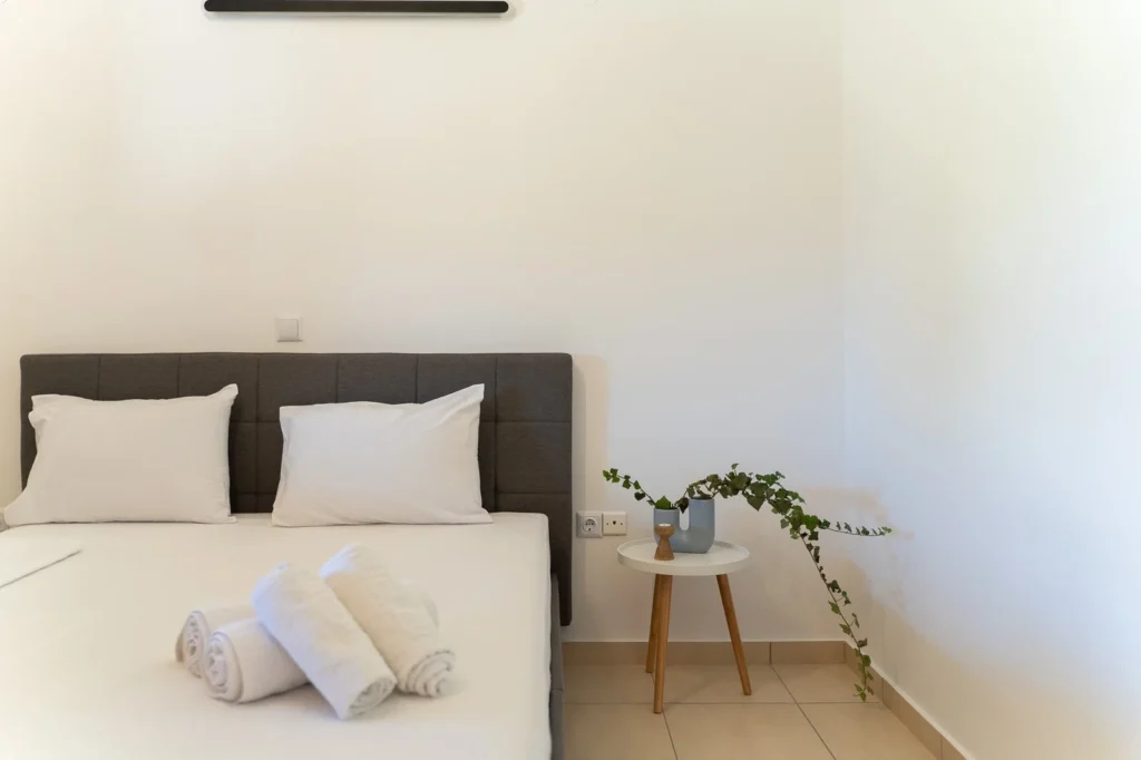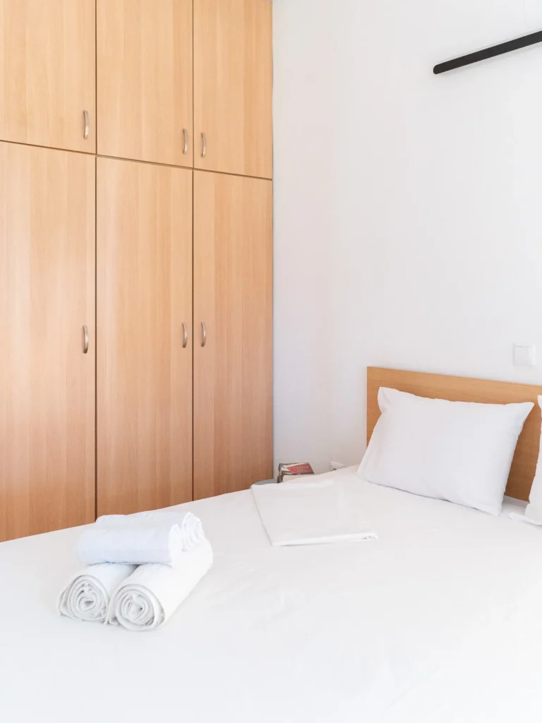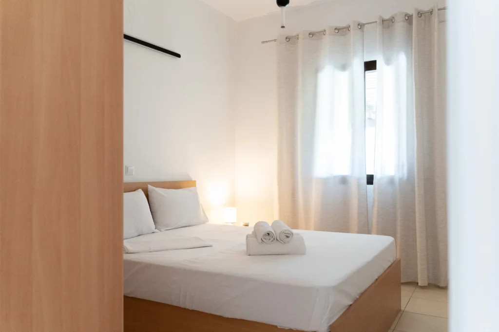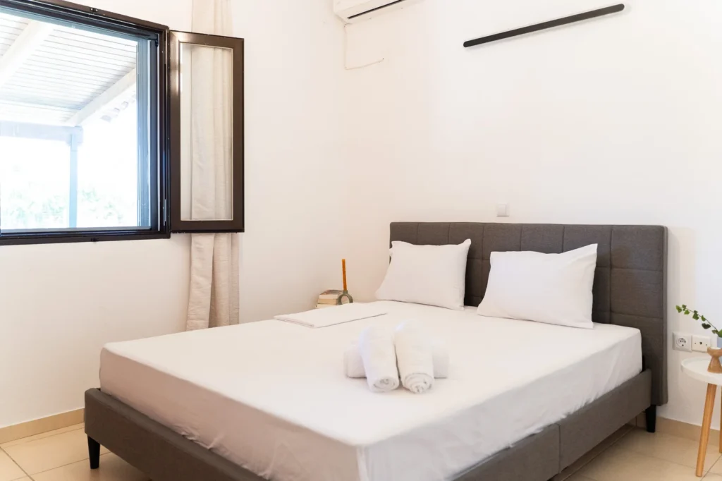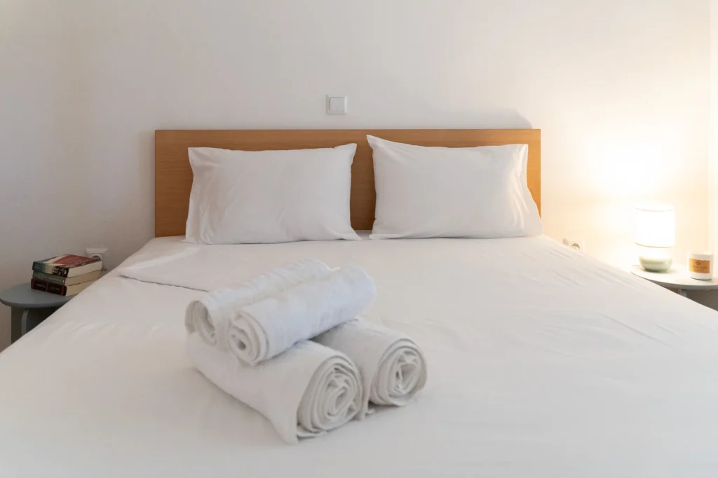 Welcome to our bright and quiet bedroom. The comfortable double bed, clean white linens, and fresh towels awaiting you guarantee a restful sleep. With air conditioning and discreet lighting, it is the perfect refuge for relaxation and tranquility.