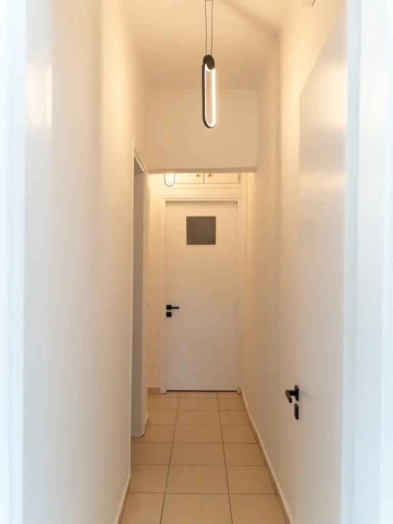 Relax in our comfortable and modern living room. Enjoy your favorite movies and series on the large smart TV with Netflix access. The minimalist decor and subtle lighting create the perfect atmosphere for unwinding after a busy day.